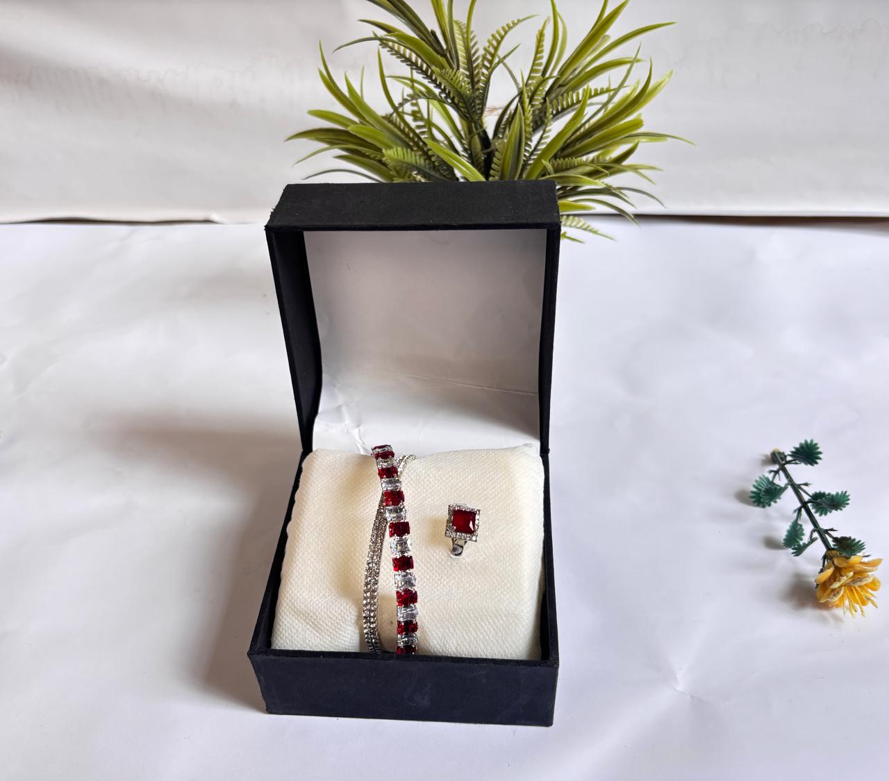 Anti tarnished Gold-Plated Red Stone Bracelet & Ring Set
